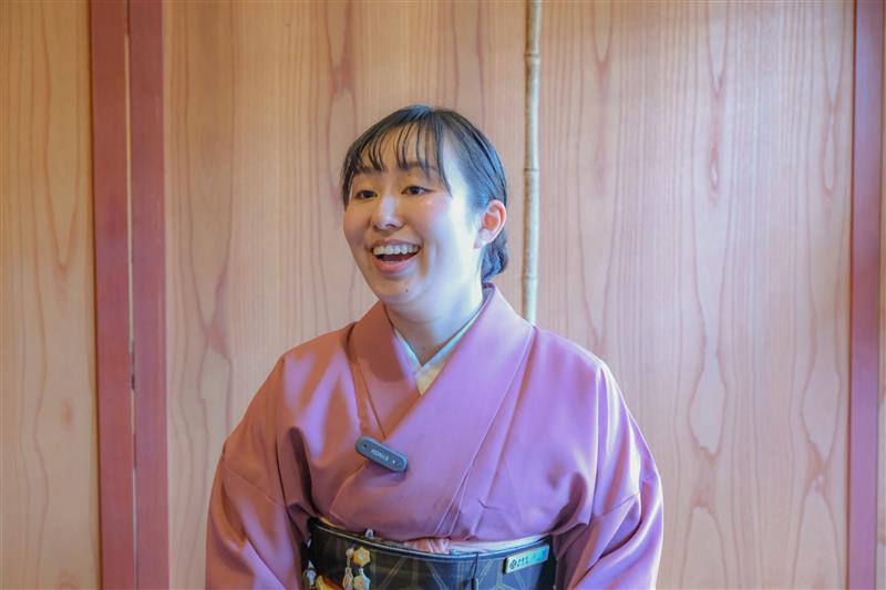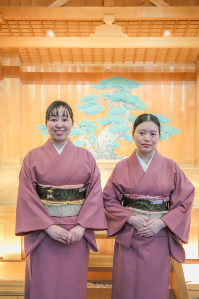 スタッフも着物を着て、お客様をお迎えする形でおもてなしをしています。